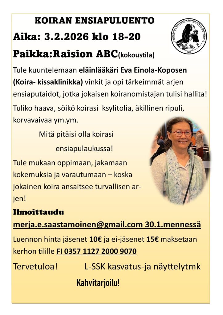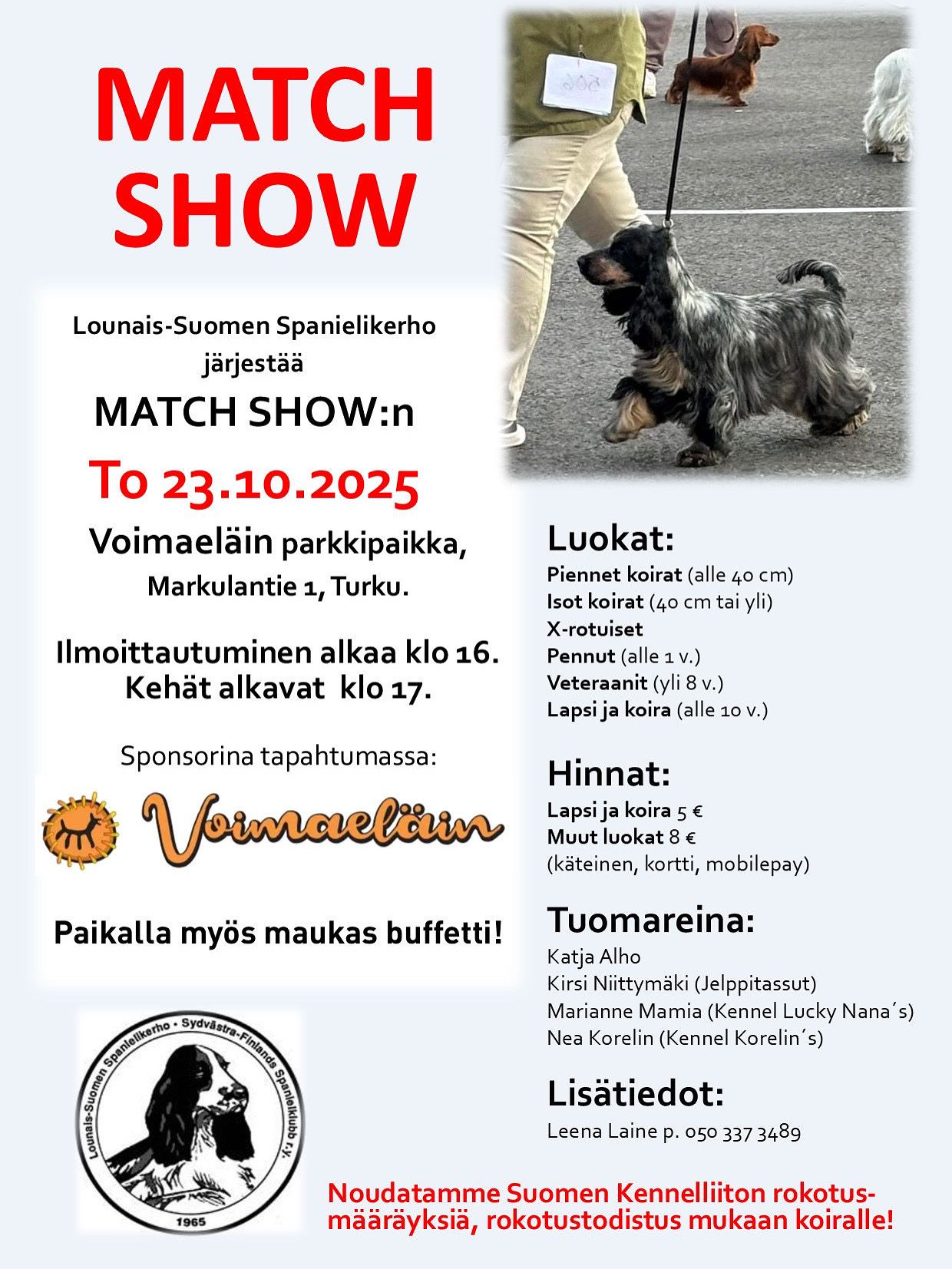 Lounais-Suomen Spanielikerho-Sydvästra-Finlands Spanielklubb ry:n sääntömääräinen vaalikokous pidetään 24.11.2025 klo 19.00